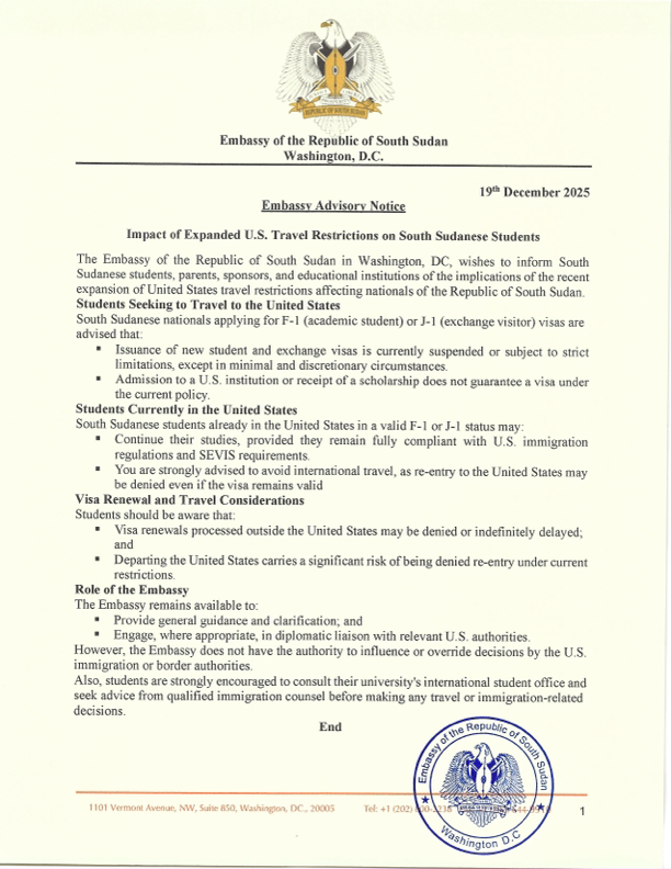 EMBASSY OF THE REPUBLIC OF SOUTH SUDAN WASHINGTON D.C.